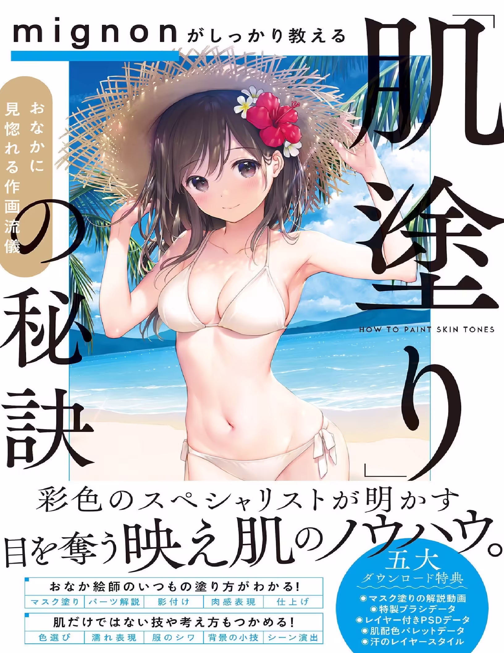 原名《mignonがしっかり教える「肌塗り」の秘訣 おなかに見惚れる作画流儀》,日本画师mignon新出的上色教程,附带了特典包:一段视频教程+PSD源文件+笔刷。